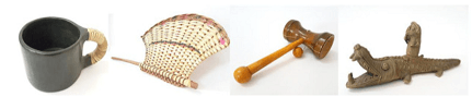 Images of traditional products of certain states of India are shown below. Identify the correct set of states to which these belong. Names of the states are in a random sequence. The products are made out of clay, willow/wicker, wood and brass. (MCQ)